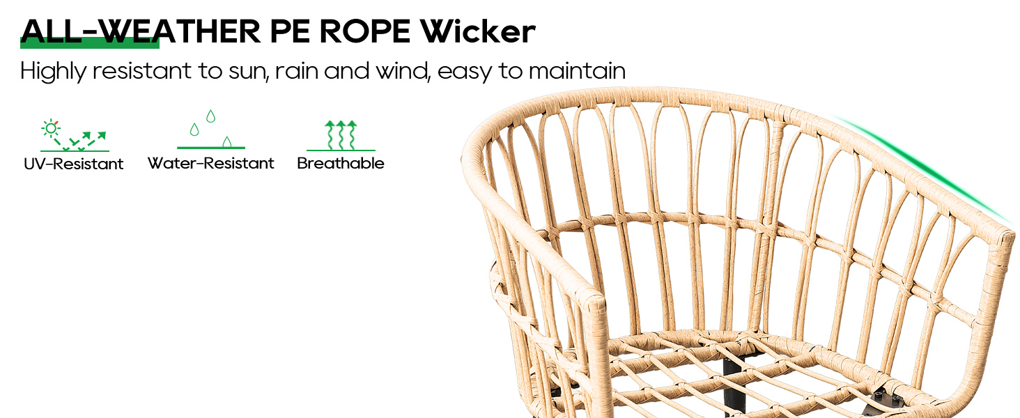 3 Piece Patio Porch Furniture Sets - Outdoor Wicker Chairs Bistro Set w/Cushions & Table for Balcony Lawn Pool Backyard